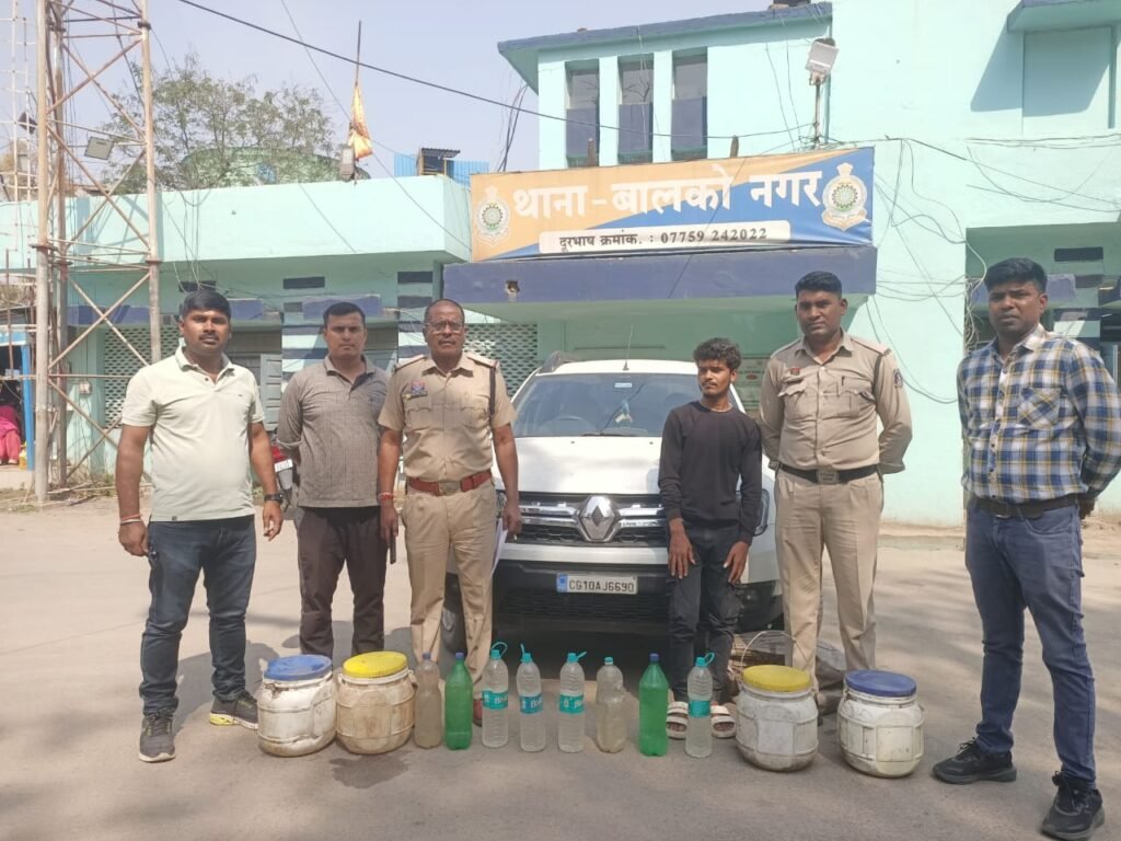 कोरबा। जिले में अवैध शराब और नशे के कारोबार पर नकेल कसने को लेकर कोरबा पुलिस ने एक बार फिर सख्ती दिखाई है। पुलिस अधीक्षक श्री सिद्धार्थ तिवारी (IPS) के निर्देशन और अतिरिक्त पुलिस अधीक्षक श्री नीतिश ठाकुर के मार्गदर्शन में चलाए जा रहे विशेष अभियान के तहत जिले के विभिन्न थाना क्षेत्रों में छापेमारी और तलाशी अभियान चलाकर करीब 171 लीटर कच्ची महुआ शराब और 6 पाव देसी मदिरा जब्त की गई है।