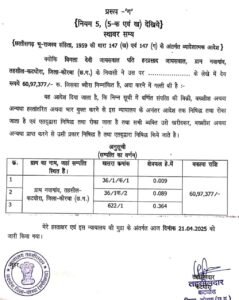 कोरबा, 22 अप्रैल 2025। कटघोरा तहसील अंतर्गत नवागांव स्थित ओम साई राइस मिल के संचालक गोल्डी जायसवाल के विरुद्ध शासन की बकाया राशि न चुकाने पर तहसीलदार न्यायालय द्वारा भूमि कुर्की आदेश जारी किया गया है। तहसीलदार, कटघोरा ने यह कार्रवाई छत्तीसगढ़ भू-राजस्व संहिता, 1959 की धारा 147 (ख) एवं 147 (ग) के अंतर्गत की है।