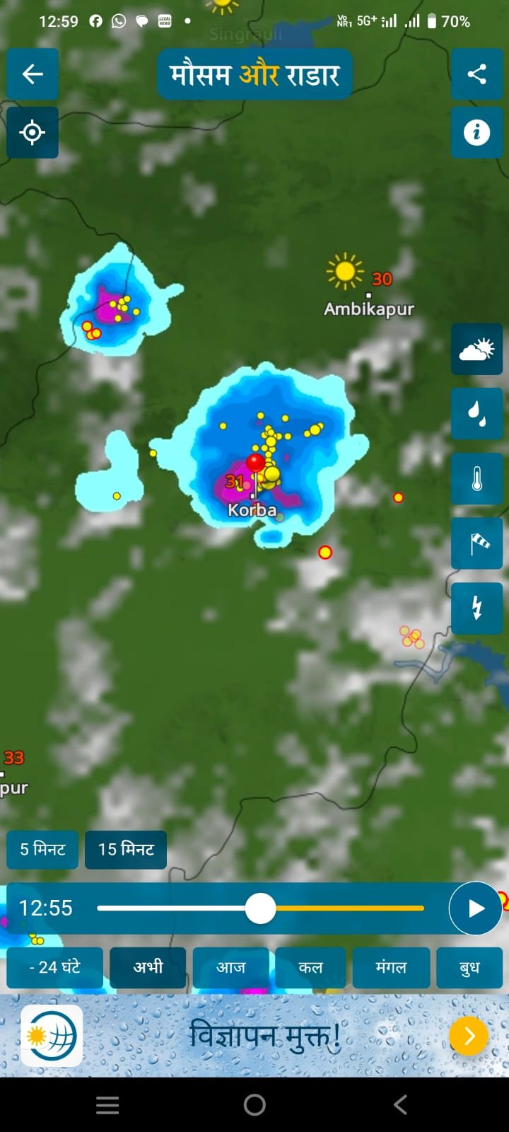कोरबा, 08 सितंबर 2024 – कोरबा जिले में मौसम विभाग ने अगले 48 घंटों के दौरान भारी और अति भारी बारिश की चेतावनी जारी की है। विभाग के अनुसार, कोरबा और आसपास के इलाकों में तेज बारिश के कारण जनजीवन प्रभावित हो सकता है। प्रशासन ने लोगों से अपील की है कि वे सावधानी बरतें और अनावश्यक रूप से घर से बाहर न निकलें।