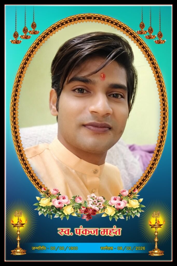 कोरबा। शहर के सीतामणी क्षेत्र निवासी युवा चिकित्सक डॉ. पंकज महंत का आकस्मिक निधन हो गया। उनका निधन दिनांक 08 फरवरी 2026, रविवार को हुआ। इस दुखद समाचार से परिजनों, मित्रों एवं क्षेत्रवासियों में गहरा शोक व्याप्त है।