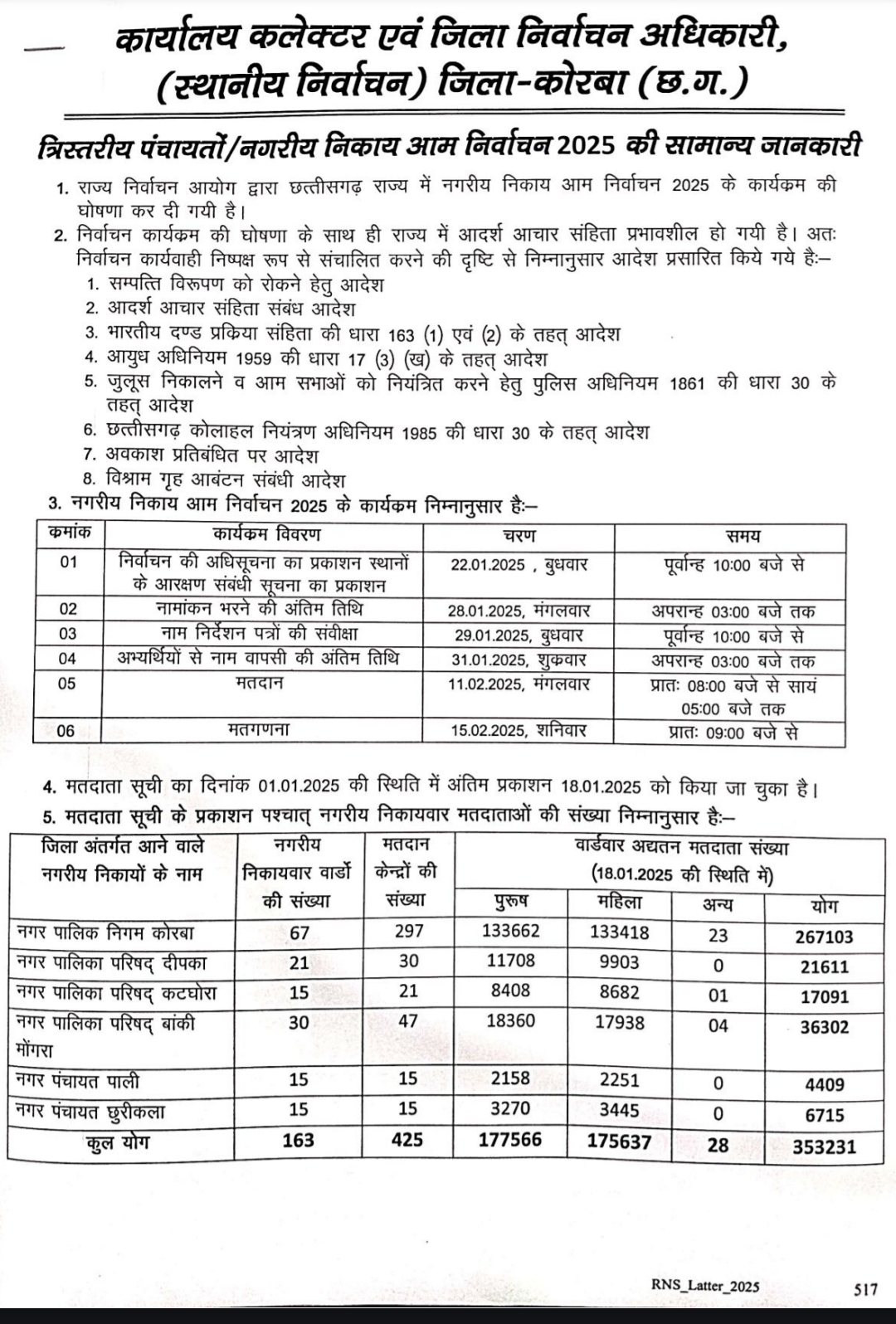 जिला प्रशासन ने जारी किया निकाय व पंचायत चुनाव का टाइम-टेबल