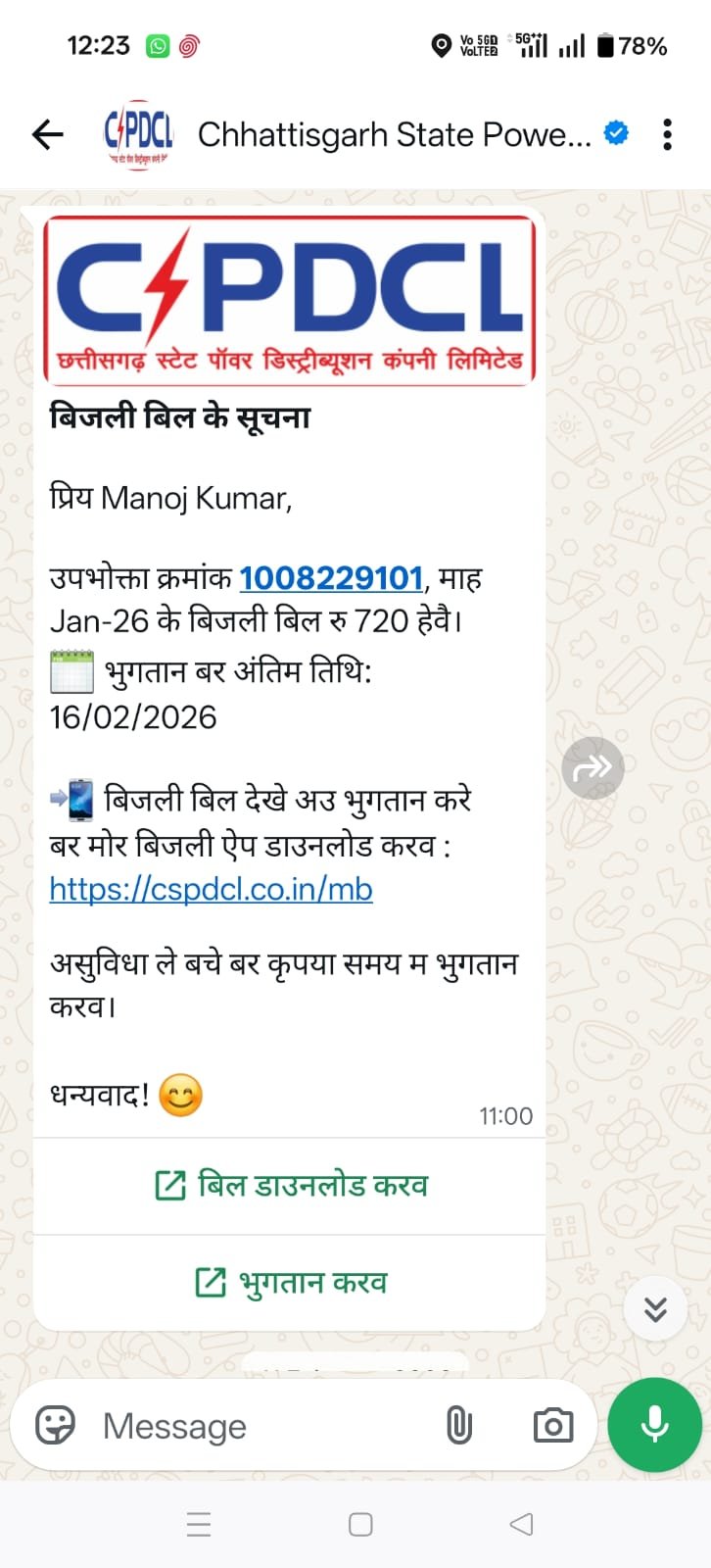 डिजिटल सेवाओं के बढ़ते उपयोग के बीच प्रदेश के बिजली उपभोक्ताओं में मातृभाषा छत्तीसगढ़ी के प्रति विशेष लगाव दिखाई दे रहा है। छत्तीसगढ़ स्टेट पॉवर कंपनीज की डिजिटल सेवाओं में बड़ी संख्या में उपभोक्ता अब छत्तीसगढ़ी भाषा में सूचना प्राप्त करना पसंद कर रहे हैं, जो स्थानीय भाषा के प्रति बढ़ते विश्वास और अपनत्व को दर्शाता है।