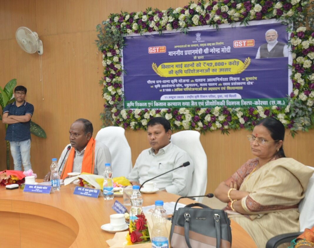 कोरबा 11 अक्टूबर, 2025/आज प्रधानमंत्री श्री नरेन्द्र मोदी द्वारा ‘प्रधानमंत्री धन-धान्य योजना’ एवं ‘दलहन आत्मनिर्भरता मिशन’ का शुभारंभ किया गया। यह कार्यक्रम देशभर में एक साथ आयोजित हुआ, इस अवसर पर कोरबा जिले के नवीन सभागार, कलेक्टोरेट परिसर से वर्चुअल माध्यम से जुड़कर जिले के जनप्रतिनिधि, किसान एवं अधिकारीगण शामिल हुए। अपने संबोधन में प्रधानमंत्री श्री नरेन्द्र मोदी ने कहा कि भारत की आत्मनिर्भरता का मूल आधार कृषि है। देश के अन्नदाताओं ने हमेशा राष्ट्र की प्रगति में योगदान दिया है। अब दलहन उत्पादन में भी आत्मनिर्भरता की दिशा में निर्णायक कदम उठाने का समय है। प्रधानमंत्री ने कहा कि किसानों की समृद्धि ही भारत के उज्जवल भविष्य की कुंजी है, और सरकार किसानों की आय दोगुनी करने के लिए निरंतर प्रयासरत है।