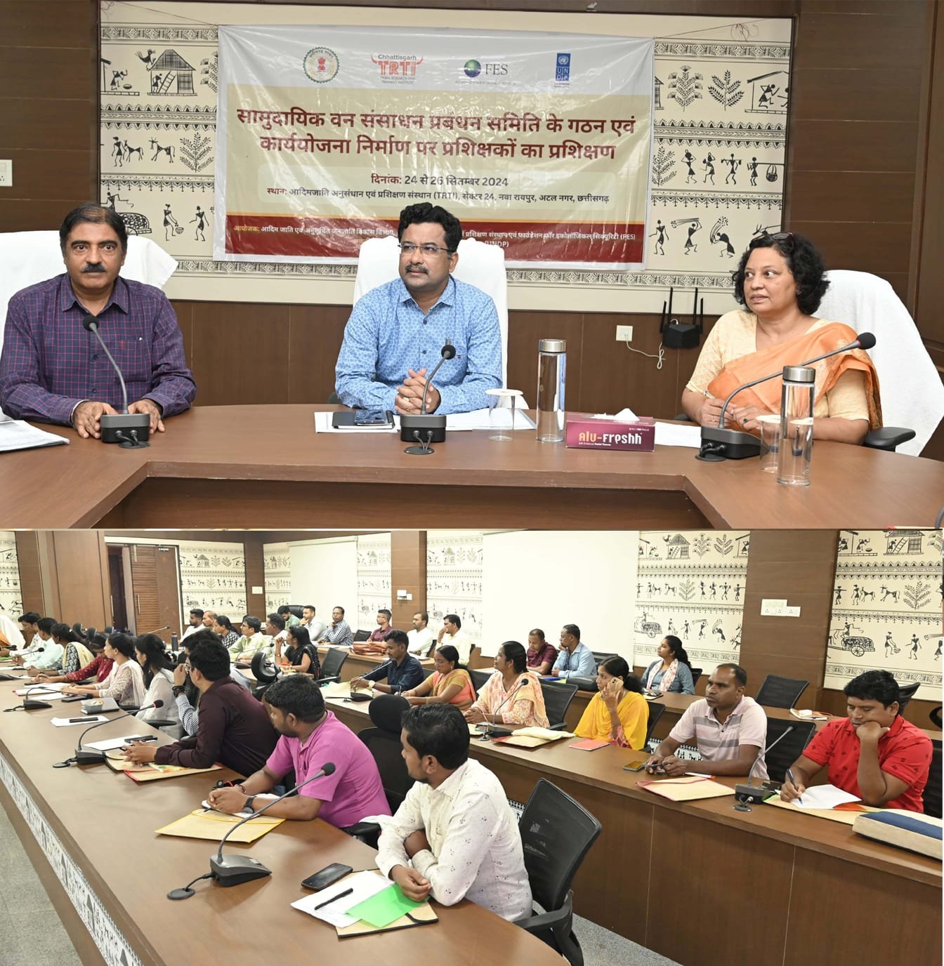 गौरतलब है कि नवा रायपुर स्थित आदिवासी अनुसंधान एवं प्रशिक्षण संस्थान में सामुदायिक वन संसाधान प्रबंधन समिति के गठन एवं कार्य योजना निर्माण पर आयोजित तीन दिवसीय मास्टर ट्रेनरों का 24 से 26 सितम्बर तक तीन दिवसीय प्रशिक्षण का आयोजन किया गया है। इस प्रशिक्षण में वन अधिकार अधिनियम के क्रियान्वयन से जुड़े अधिकारी सहित एनजीओ के प्रतिनिधि शामिल थे। इस मौक़े पर प्रभारी आयुक्त श्री संजय गौड़, फाउंडेशन ऑफ़ इकोलॉजिकल सिक्युरिटी के राज्य समन्वय सुश्री नमिता मिश्रा, यूएनडीपी के श्री किशोर कुुमार सहित अन्य सभी संभाग के प्रशिक्षार्थी उपस्थित थे।