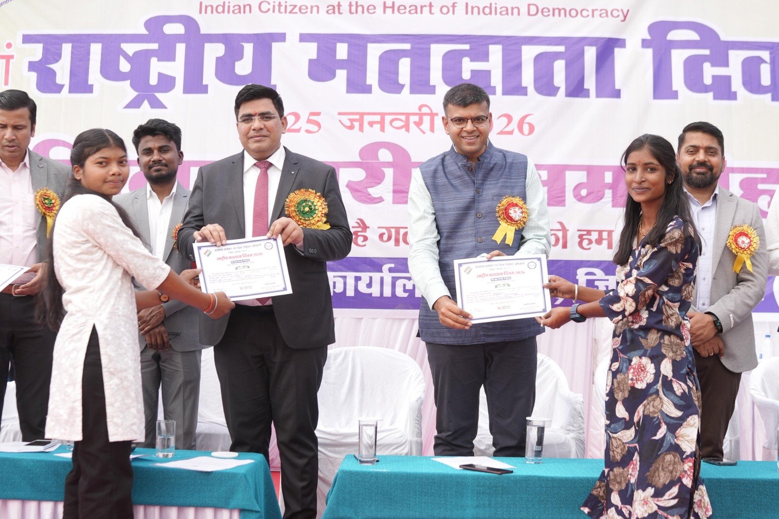 इस अवसर पर निगम आयुक्त श्री आशुतोष पाण्डेय, सहायक कलेक्टर श्री क्षितिज गुरभेले एवं जिला पंचायत सीईओ श्री दिनेश कुमार नाग ने नवीन मतदाताओं को शुभकामनाएं देते हुए मतदान के महत्व, निर्वाचन प्रक्रिया एवं नागरिक जिम्मेदारियों पर प्रकाश डाला।