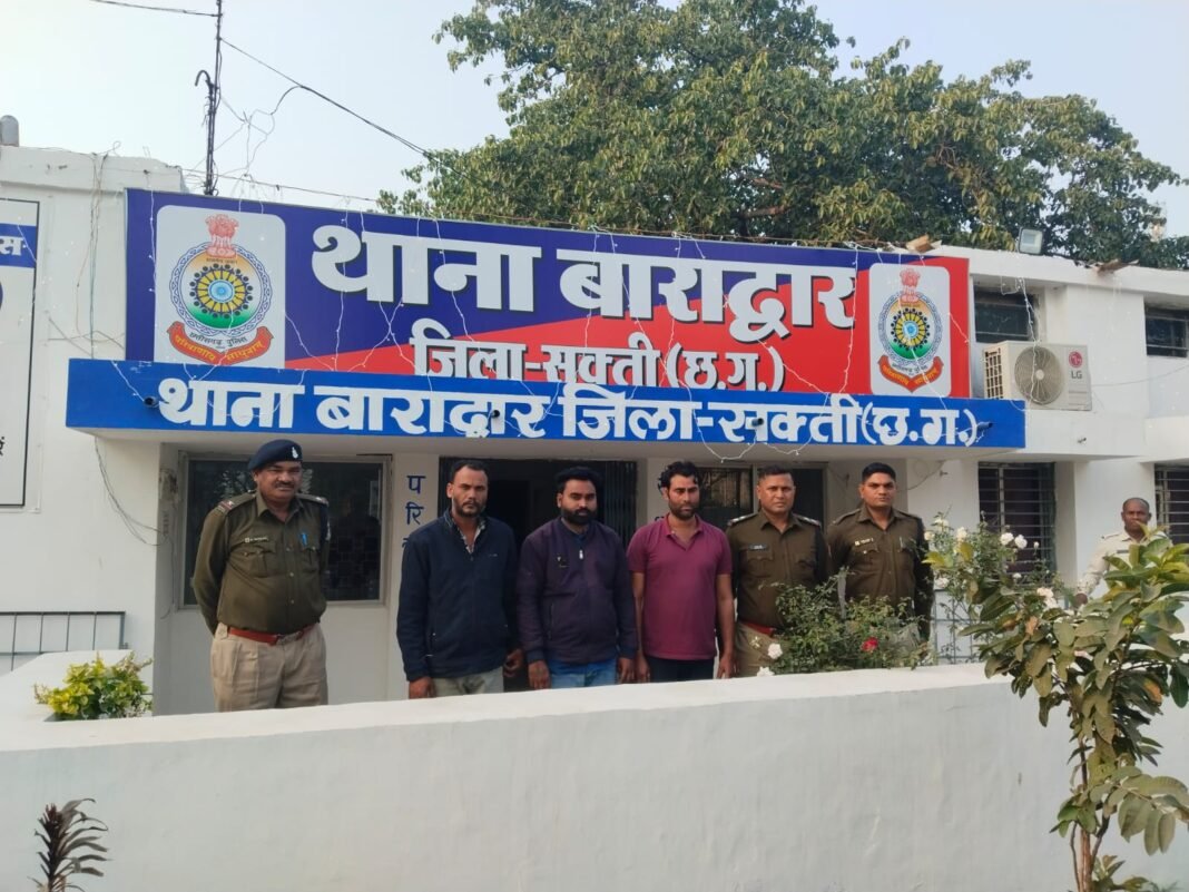 ’’थाना बाराद्वार- विवरण इस प्रकार है कि प्रार्थी दिनांक 23.01.2025 को आवेदक किशोर कुमार बंजारे पिता श्री सोनुराम बंजारे खनि. अधिकारी जिला सक्ती द्वारा थाना बाराद्वार आकर लिखित रिपोर्ट दर्ज श्रीमान कलेक्टर महोदय सक्ती को वाॅटसप के माध्यम से कूटरचना करने का मेसेज मिलने पर संदेही राजकुमार कुर्रे पिता श्री स्व. प्रभुराम कुर्रे ग्राम औरदा तह. खरसिया जिला रायगढ को ग्राम पंचायत डूमरपारा तह. बाराद्वार जिला सक्ती स्थित शासकीय भूमि खसरा नं. 2338 रकबा 10.2910 खसरा नं. 2143/1 रकबा 9.1130 एवं खसरा नं. 2340 रकबा 11.4730 मेें अवैध रूप से फ्लाई एश भराव हेतु फर्जी तरीके से पत्र तैयार कर खनि अधिकारी जिला सक्ती के फर्जी हस्ताक्षर किया जाकर अवैध रूप से फ्लाई एश भराव करने की अनुमति जारी की गयी कि रिपोर्ट पर आरोपीगणो के विरूध्द अपराध कायम कर विवेचना में लिया गया है। । घटना के संबंध में श्रीमान पुलिस अधीक्षक महोदया सुश्री अंकिता शर्मा (भापुसे) जी के निर्देशन व अतिरिक्त पुलिस अधीक्षक महोदय श्री हरीश यादव एवं अनुविभागीय अधिकारी (पुलिस) श्री मनीष कुंवर सक्ती के मार्गदर्शन प्राप्त किया गया। प्रकरण के घटना कारित कर फरार आरोपीगणों को त्वरित कार्यवाही/पतासाजी कर श्रीमान कलेक्टर व जिला खनिज अधिकारी का सील बनवाकर अवैध रूप से फ्लाई एश भराव हेतु फर्जी तरीके से पत्र तैयार कर कलेक्टर व खनिज अधिकारी जिला सक्ती के फर्जी हस्ताक्षर करने वाले आरोपी 1.राजुकमार कुर्रे पिता प्रभू राम कुर्रे उम्र 43 साल निवासी औरदा थाना खरसिया जिला रायगढ़ (छग) 2. लखन डेंजारे पिता अभय राम डेंजारे उम्र 36 साल निवासी ब्लाक काॅलोनी मदनपुर थाना खरसिया जिला रायगढ़ (छग) हामु. सिंघरा थाना मालखरौदा जिला सकती(छग) 3. युवराज बंजारे पिता परसराम बंजारें उम्र 32 साल निवासी सतनामी पारा तेलीकोट थाना खरसिया जिला रायगढ़(छग) को हिरासत मे लेकर पूछताछ किया गया जो अपराध करना कबूल करने से दिनांक 25.01.25 को गिरफतार कर न्यायिक रिमांड पर संबंधित न्यायालय पेश किया गया है
