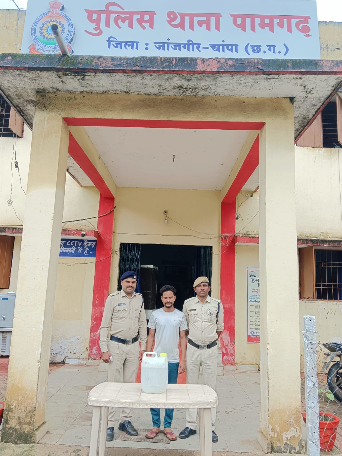 ⏩ *श्रीमान विवेक शुक्ला (IPS) पुलिस अधीक्षक जांजगीर चांपा* के निर्देशन में जिले में अवैध शराब बिक्री पर अंकुश लाने के लिए जिला पुलिस जांजगीर द्वारा लगातार कार्रवाई की जा रही है इसी क्रम में *अतिरिक्त पुलिस अधीक्षक श्री राजेंद्र कुमार जायसवाल के मार्गदर्शन* में थाना पामगढ़ पुलिस द्वारा अवैध शराब बिक्री करने वालों के विरुद्ध कार्यवाही किया गया जिसमें मुखबिर सूचना पर आरोपी नीरज रात्रे पिता किरित राम उर्फ मनहरण रात्रे उम्र 28 वर्ष साकिन खैयापारा पामगढ़ थाना पामगढ़ जिला जांजगीर- चांपा के कब्जे से जरीकेन में रखे 08 लीटर अवैध कच्ची महुआ शराब कीमती 800/₹ रुपए को बरामद किया जाकर आरोपी के विरुद्ध धारा 34 (2) आबकारी एक्ट का घटित करना पाए जाने से विधिवत कार्यवाही कर थाना पामगढ़ में अपराध क्रमांक 289/24 धारा 34(2)आबकारी एक्ट पंजीबद्ध कर आरोपी को विधिवत गिरफ्तार कर दिनांक 01.08.2024 को न्यायिक रिमांड पर भेजा गया है।