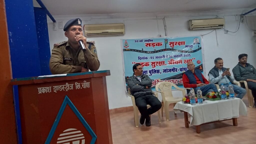 ⏩ जांजगीर-चांपा जिले में 36वें राष्ट्रीय सड़क सुरक्षा माह के अंतर्गत पुलिस अधीक्षक श्री विवेक शुक्ला (IPS) के निर्देशन में विभिन्न जागरूकता कार्यक्रम आयोजित किए जा रहे हैं। इसी क्रम में अतिरिक्त पुलिस अधीक्षक श्री उमेश कुमार कश्यप के मार्गदर्शन एवं SDOP चांपा श्री यदुमणि सिदार के नेतृत्व में यातायात पुलिस द्वारा यातायात जन जागरूकता कार्यक्रम का आयोजन प्रकाश इंडस्ट्रीज लिमिटेड चांपा में किया गया।