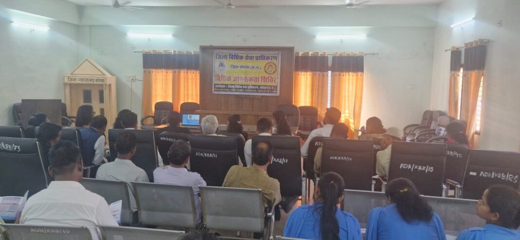 उक्त जागरूकता कार्यक्रम में माननीय श्री जयदीप गर्ग, विशेष न्यायाधीश (एस.सी./एस.टी.) पीए एक्ट कोरबा, कु0 डिम्पल, सचिव, जिला विधिक सेवा प्राधिकरण कोरबा, जिला लोक अभियोजन अधिकारी श्री राजेन्द्र कुमार साहू, जिला न्यायालय कोरबा के कर्मचारीगण, लीगल एड डिफेंस कौंसिल सिस्टम कोरबा के कौंसल एवं स्टाॅफ तथा जिला विधिक सेवा प्राधिकरण कोरबा के अधिकार मित्र उपस्थित रहें तथा विधिक जागरूकता के साथ कार्यक्रम का समापन प्रश्नोत्तर के साथ किया गया।