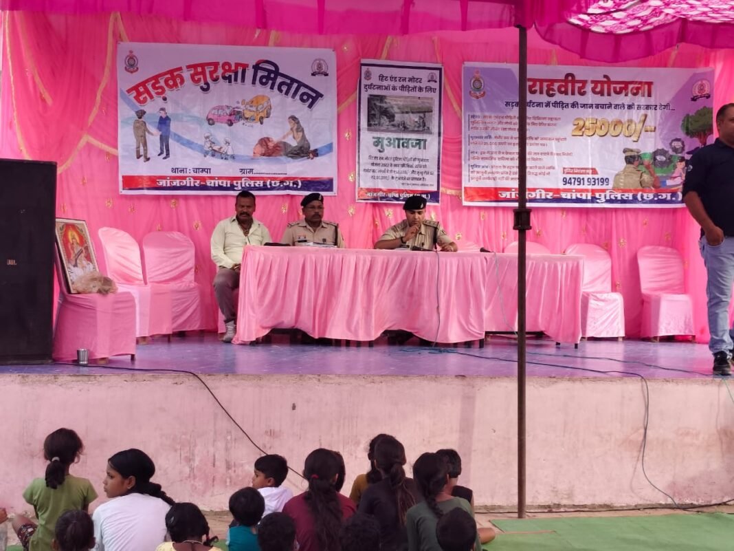 ⏩ पुलिस अधीक्षक जांजगीर- चाम्पा श्री विजय कुमार पाण्डेय (IPS) के निर्देशन एवं अतिरिक्त पुलिस अधीक्षक जांजगीर श्री उमेश कुमार कश्यप के कुशल मार्गदर्शन में जिले में सड़क दुर्घटनाओं में कमी लाने के लिए जनजागरूकता अभियान चलाकर लोगो को जागरूक किया जा रहा है, इसी क्रम में अतिरिक्त पुलिस अधीक्षक यातायात श्री उदयन बेहार के नेतृत्व में जिले के प्रत्येक थाना/चौकी क्षेत्रांर्गत गांवों में जा-जाकर पुलिस द्वारा राहवीर योजना के संबंध में जन जागरूकता अभियान चलाया जा रहा है।