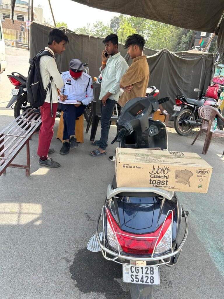 🔹चेकिंग अभियान के दौरान मोटर व्हीकल एक्ट के अंतर्गत 121 वाहन चालकों पर कार्यवाही की गई। इसमें बिना नंबर प्लेट, तीन सवारी, शराब पीकर वाहन चलाने एवं अन्य यातायात नियमों का उल्लंघन करने वालों पर सख्त कार्यवाही किया जा रहा है।