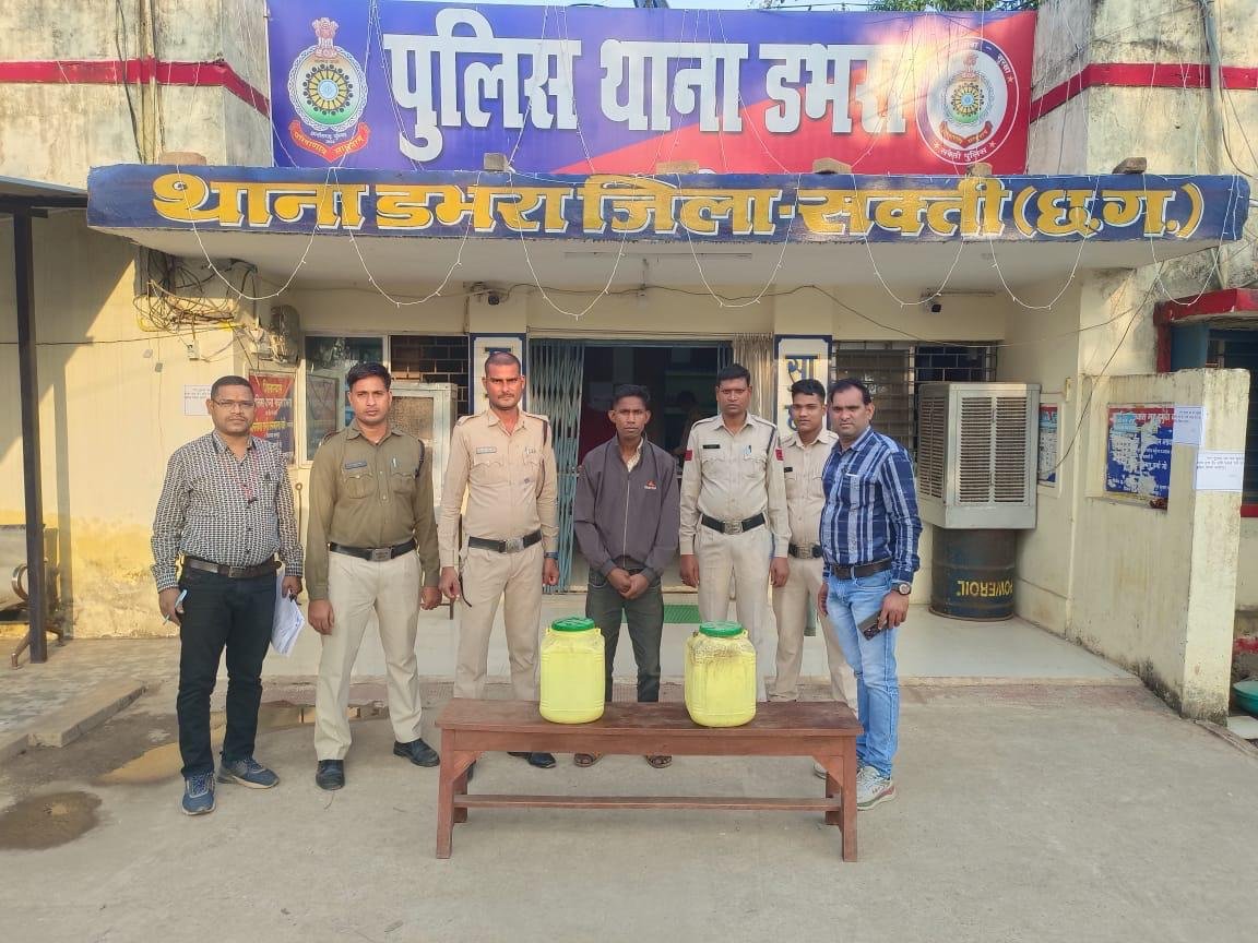 श्रीमान् पुलिस अधीक्षक महोदय सुश्री अंकिता शर्मा (भा.पु.से.), अतिरिक्त पुलिस अधीक्षक महोदय सुश्री रमा पटेल (रा.पु.से.), एवं अनुविभागीय अधिकारी पुलिस चंद्रपुर / डमरा अंजली गुप्ता (रा.पु.से.) के द्वारा क्षेत्र में हो रहे, अवैध जुओं, सट्टा, शराब और नशीले मादक पदार्थो पर रोकथाम के लिए दिये गए कड़े निर्देश के परिपालन में थाना प्रभारी डभरा के द्वारा थाना क्षेत्र में मुखबिर तैनात किया गया था। घटना दिनांक 19.11.2024 को जरिये मुखबीर से सूचना मिला कि ग्राम सकराली का दुर्गा सिंह निषाद भारी मात्रा में अटल चौक सकराली मेन रोड के पास अपने कब्जे में बिक्री करने हेतु कच्ची महुआ शराब भण्डारण कर रखा है कि सूचना पर वरिष्ठ अधिकारियो को अवगत कराकर मुखबिर के बताये स्थान पर जाकर रेड कार्यवाही करने पर आरोपी दुर्गा सिंह निषाद पिता घुरवा राम उम्र 35 वर्ष साकिन सकराली थाना डभरा के कब्जे से 30 लीटर कच्ची महुआ शराब को जप्त कर आरोपी के विरूद्ध अपराध क्रमांक 427/2024 धारा 34 (2) आबकारी एक्ट कायम कर दिनांक 19.11.2024 को गिरफ्तार किया जाकर माननीय न्यायालय रिमाण्ड पर भेजा गया है।