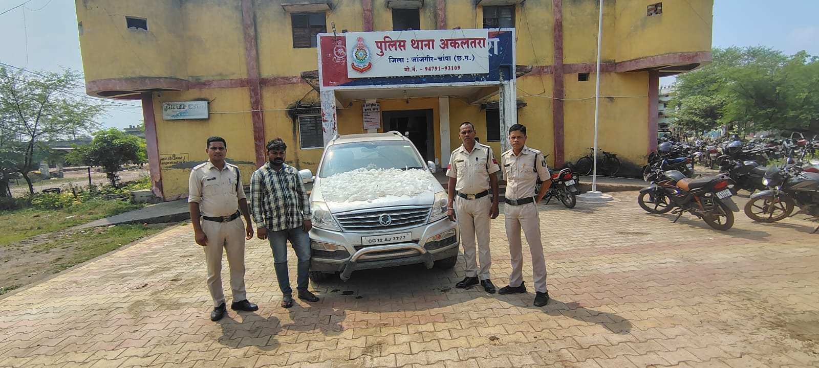 ⏩ श्री विवेक शुक्ला (भा.पु.से.) पुलिस अधीक्षक जांजगीर चांपा के निर्देशन में तथा अतिरिक्त पुलिस अधीक्षक राजेंद्र कुमार जायसवाल के मार्गदर्शन में अवैध शराब बिक्री करने वालों के विरुद्ध लगातार कार्रवाई की जा रही है इसी क्रम में थाना अकलतरा पुलिस द्वारा अवैध शराब बिक्री करने वाले के विरुद्ध करवाई किया गया जिसमें ग्राम भैसतरा के शत्रुहन गोड के कब्जे से पाउच में रखे कच्ची महुआ शराब जुमला 50 लीटर एवं परिवहन में प्रयुक्त महिन्द्रा Rexton कार क्र. CG 12 AJ 7777 कीमती 13 लाख रूपये को बरामद किया जाकर आरोपी के विरुद्ध धारा 34(2) ,59(क) आबकारी एक्ट के तहत कार्यवाही कर विधिवत गिरफ्तार कर दिनांक 09.10.2024 को न्यायिक रिमांड पर भेजा गया है।
