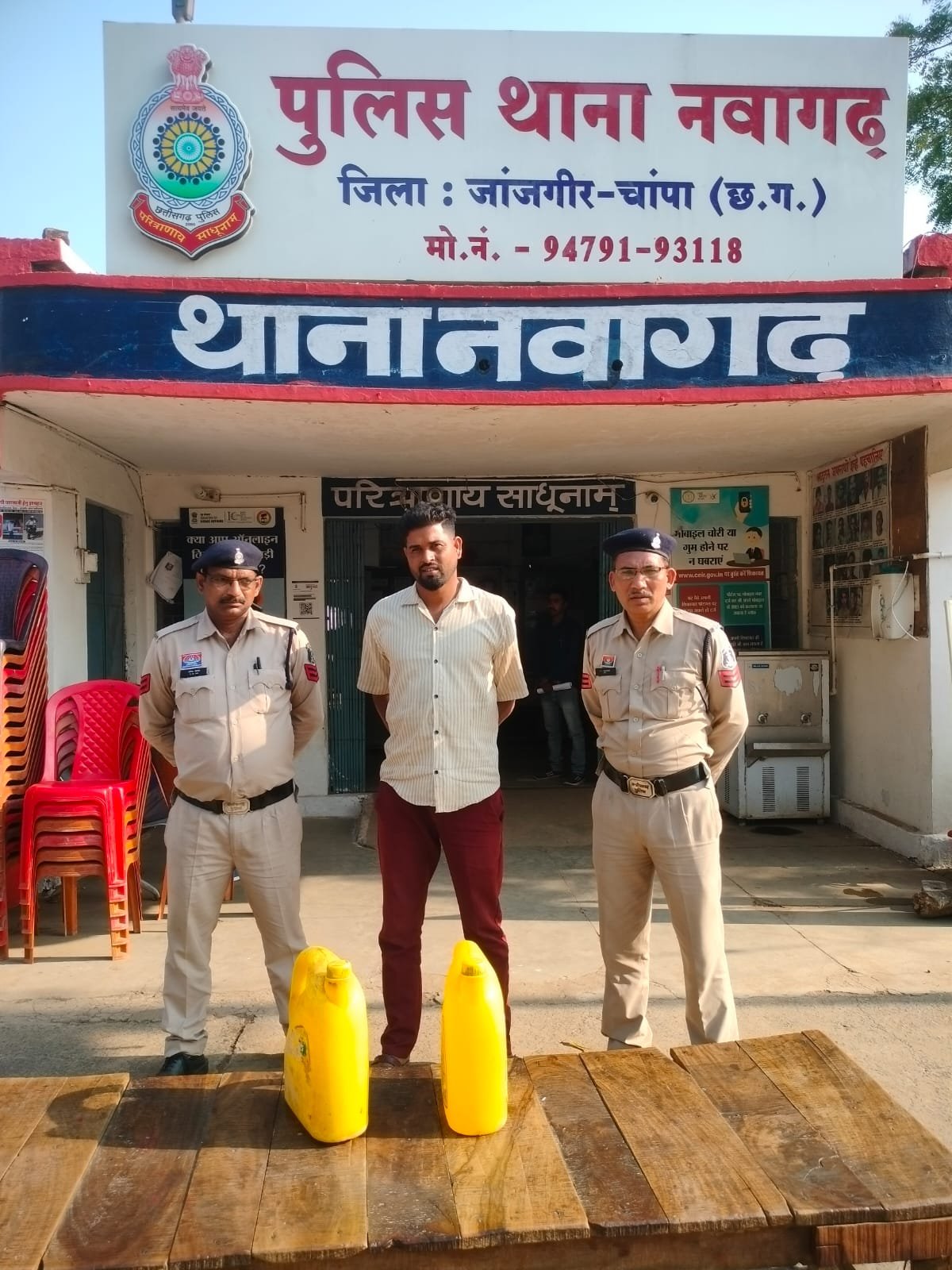 अवैध कच्ची महुआ शराब के साथ आरोपी गिरफ्तार थाना नवागढ़ पुलिस की त्वरित कार्यवाही