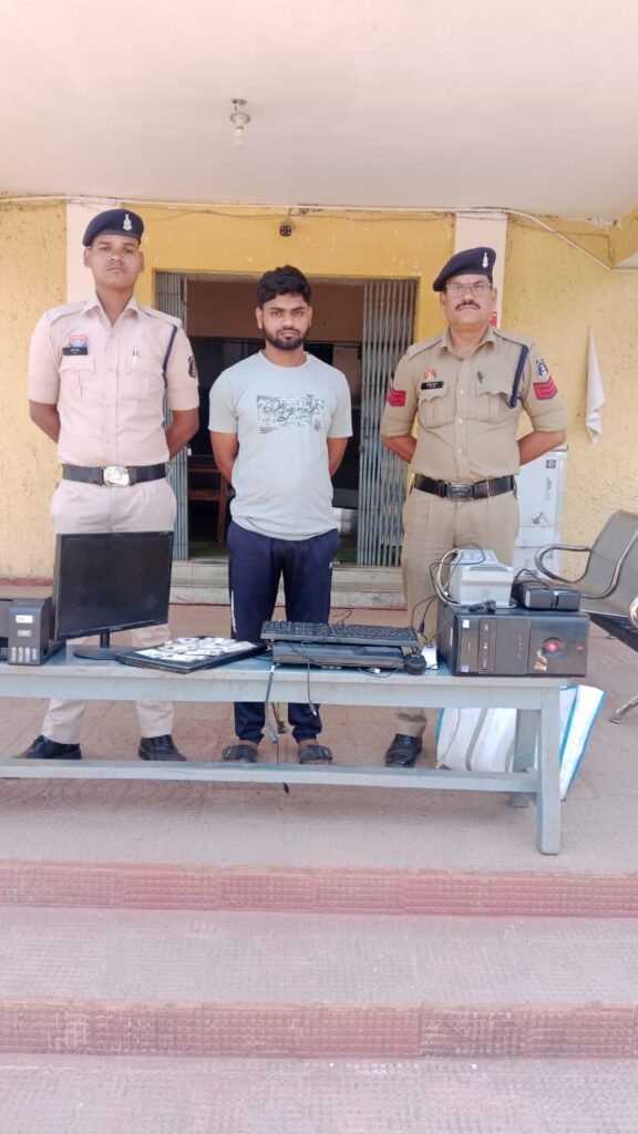⏩ मामले को गंभीरता से लेते हुए श्री विवेक शुक्ला (IPS) वरिष्ठ पुलिस अधीक्षक जांजगीर चांपा के निर्देशन में तथा अतिरिक्त पुलिस अधीक्षक उमेश कुमार कश्यप के कुशल मार्गदर्शन में विवेचना दौरान आरोपी अलून गिर पिता बयजर अली उम्र 30 वर्ष निवासी पिंकनीधार थाना दिनहट जिला कुचबिहार पश्चिम बंगाल हा.मु. कोटमीसोनार को हिरासत मे लेकर पूछताछ करने पर अपने मेमोरेण्डम कथन में जयराम नगर के पास शुभम च्वाईस सेंटर ग्राम कोसोंदी से अपना अलग पता एवं जाति बदल कर फर्जी पेन कार्ड एवं आधार कार्ड बनवाना बताया । जिस पर शुभम च्वाईस सेंटर ग्राम कोसोंदी के संचालक शुभम साहू उम्र 26 वर्ष से पूछताछ कर मेमोरण्डम कथन लिया गया जिसने अलून गिर पिता बयजर अली का फर्जी तरीके से पता एवं जाति बदलना अपना जुर्म स्वीकार किया आरोपी शुभम साहू द्वारा फर्जी आई डी दस्तावेज तैयार कर आरोपी अलून गिर का शासन प्रशासन को धोखा देने के उद़देश्य में सहयोगी पाये जाने से घटना में प्रयुक्त इलेक्ट्रानिक संसाधन एक थम इम्प्रेशन बायोमेट्रिाक्स, एक नग लेपटाप, एक मानीटर, एक सीपीयू, एक कलर प्रिंंटर, एक की बोर्ड, माउस, एक स्कैनर, एक आईआरटीएस कैमरा, एक मल्टी फिंगर स्कैनर, एक पोर्टेबल कैमरा, एक नग मार्को एवं एक नग मोबाईल फोन को जप्ती की गई आरोपी शुभम साहू को विधिवत गिरफ्तार कर दिनांक 02.05.25 को न्यायिक रिमांड में भेजा गया।