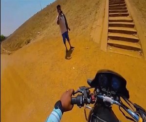 युवक तांदुला बांध के नीचे से ऊपर जाने के लिए पार पर बनाए गए सीढ़ियों के किनारे से बाइक को चलाते हुए ऊपर जा रहा है. इसमें सीढ़ियों के बगल से चलते हुए खतरे के अतिरिक्त थोड़ी सी भी रफ्तार तेज होने पर सीधे बांध में गिरने का खतरा साफ नजर आ रहा है.