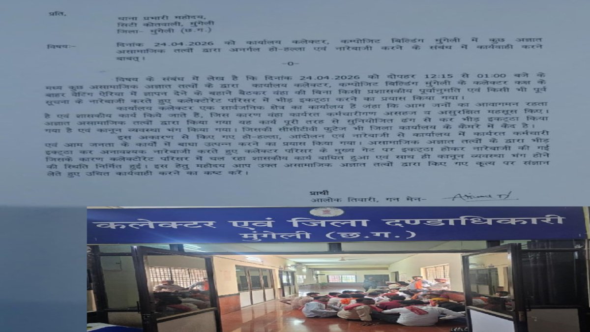 इस पूरे घटनाक्रम को लेकर कलेक्टर कार्यालय के कर्मचारियों ने सिटी कोतवाली में लिखित शिकायत दर्ज कराई है। शिकायत के अनुसार, 24 अप्रैल 2026 को दोपहर करीब 12:15 से 1:00 बजे के बीच कुछ अज्ञात तत्वों ने कलेक्टर कक्ष के बाहर हंगामा और नारेबाजी की, जिससे कर्मचारियों और आम नागरिकों में असहजता और असुरक्षा की स्थिति बनी।