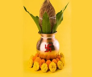 कलश में सिक्का, सुपारी, गंगाजल, शहद, आम के पत्ते रखें.