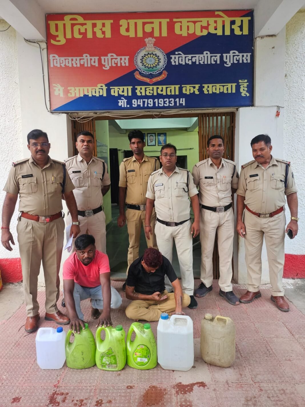 कोरबा जिला पुलिस अधीक्षक राजेश कुकरेजा के निर्देश पर सजग कोरबा अभियान के तहत जिले में अवैध नशे के कारोबार पर प्रतिबंध लगाने सतत कार्यवाही की जा रही है। इसी तारतम्य में कटघोरा अतिरिक्त पुलिस अधीक्षक नेहा वर्मा व एसडीओपी पंकज ठाकुर के मार्गदर्शन में कटघोरा थाना प्रभारी धर्मनारायण तिवारी ने टीम गठित कर आज मुखबिर की सूचना पर छुरी में अवैध नशे के कारोबार में लिप्त लोगों की घेराबंदी कर कार्यवाही की गई।