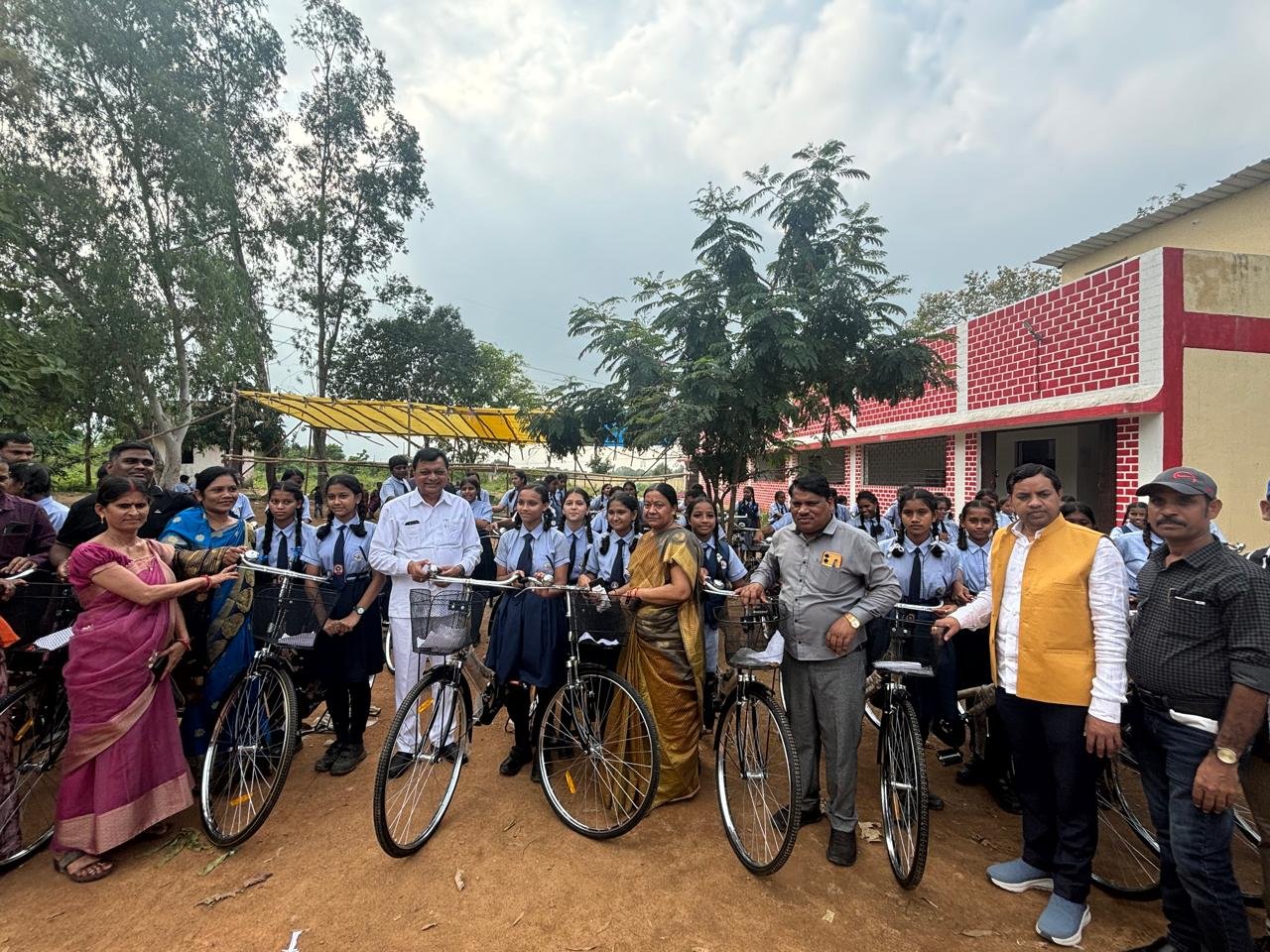 मंत्री श्री देवांगन ने कहा की कक्षा 9 वीं में अध्ययनरत छात्राओं को कहा कि पैदल आने जाने की समस्या से निजात दिलाने के लिए मुख्यमंत्री श्री विष्णु देव साय ने सरस्वती साइकिल योजना के तहत साइकिल वितरण का निर्देश अधिकारियों को दिए हैं।मुख्यमंत्री की संवेदनशीलता का ही परिणाम है कि आज ग्रामीण क्षेत्र की छात्राएं साइकिल से स्कूल आना-जाना कर नियमित अध्ययन कर आगे बढ़ रही हैं। मंत्री श्री देवांगन ने कहा कि हमारी सरकार बेटियों को निःशुल्क पाठ्यपुस्तक, गणवेश प्रदान कर रही है जिससे बेटियां पढ़ लिखकर अपने परिवार के साथ क्षेत्र का नाम रोशन करते हुए आगे बढ़े।
