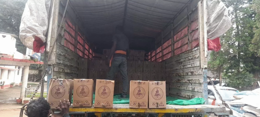 Liquor smuggling जशपुर, छत्तीसगढ़ | 08 अक्टूबर 2025 — जिले की कोतवाली पुलिस ने शराब तस्करी के खिलाफ एक बड़ी सफलता हासिल की है। गुप्त सूचना के आधार पर पुलिस ने राष्ट्रीय राजमार्ग (NH) पर एक ट्रक को रोककर उसकी तलाशी ली, जिसमें से लगभग ₹25 लाख की अवैध शराब बरामद की गई। इस मामले में पंजाब निवासी दो तस्करों को गिरफ्तार किया गया है।