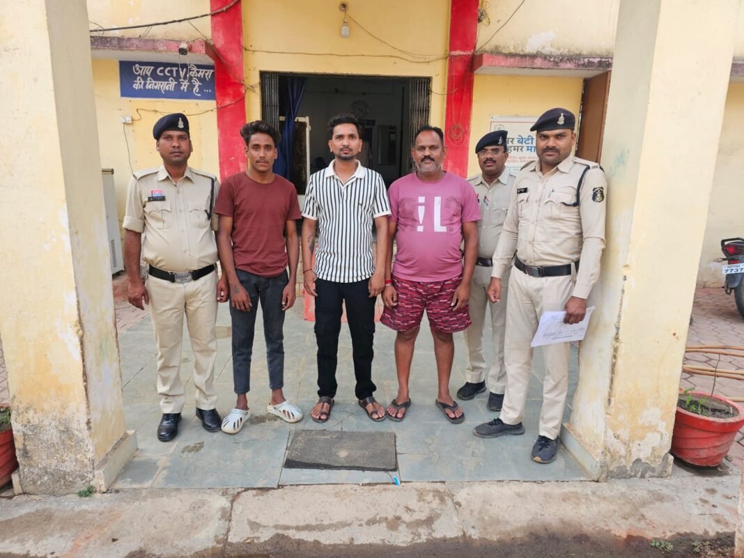 ⏩ घटना में शामिल आरोपियों की थाना पामगढ़ पुलिस द्वारा लगातार पातासाजी की जा रही थी, जिसको मुखबिर सूचना पर से तीनों आरोपियों को पकड़ा जिसको हिरासत में लेकर घटना के संबंध में पूछताछ करने पर जुर्म स्वीकार किए जाने से विधिवत गिरफ्तार कर दिनांक 12.04.25 को न्यायिक रिमांड पर भेजा गया।