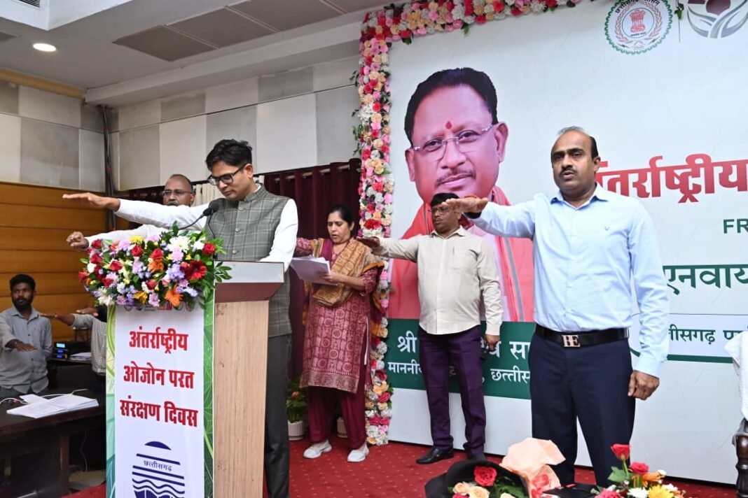 रायपुर, 16 सितम्बर 2025/ अंतर्राष्ट्रीय ओजोन परत संरक्षण दिवस पर छत्तीसगढ़ पर्यावरण संरक्षण मंडल द्वारा राजधानी रायपुर के सिविल लाइंस स्थित नवीन विश्राम गृह में पोस्टर एवं इन्वायरोथान प्रतियोगिता का आयोजन किया गया। कार्यक्रम के मुख्य अतिथि के रूप में वित्त, वाणिज्य कर, आवास एवं पर्यावरण तथा योजना एवं सांख्यिकी विभाग के मंत्री श्री ओ.पी. चौधरी शामिल हुए। कार्यक्रम को संबोधित करते हुए वित्त मंत्री श्री चौधरी ने कहा कि ओजोन परत का संरक्षण केवल पर्यावरण ही नहीं, बल्कि आने वाली पीढ़ियों के सुरक्षित भविष्य और स्वास्थ्य के लिए भी अनिवार्य है। उन्होंने कहा कि पर्यावरण सबके लिए समान है अमीर, गरीब, विद्वान या साधारण व्यक्ति और इसकी सुरक्षा की जिम्मेदारी भी सबकी है।