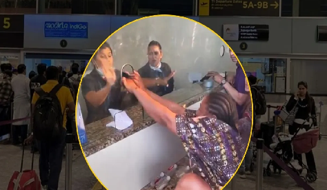 मुंबई एयरपोर्ट पर एक विदेशी महिला यात्री इंडिगो के काउंटर पर चढ़ गई और जोरदार विरोध जताया। उसने आरोप लगाया कि
