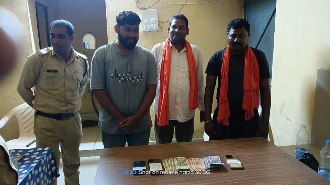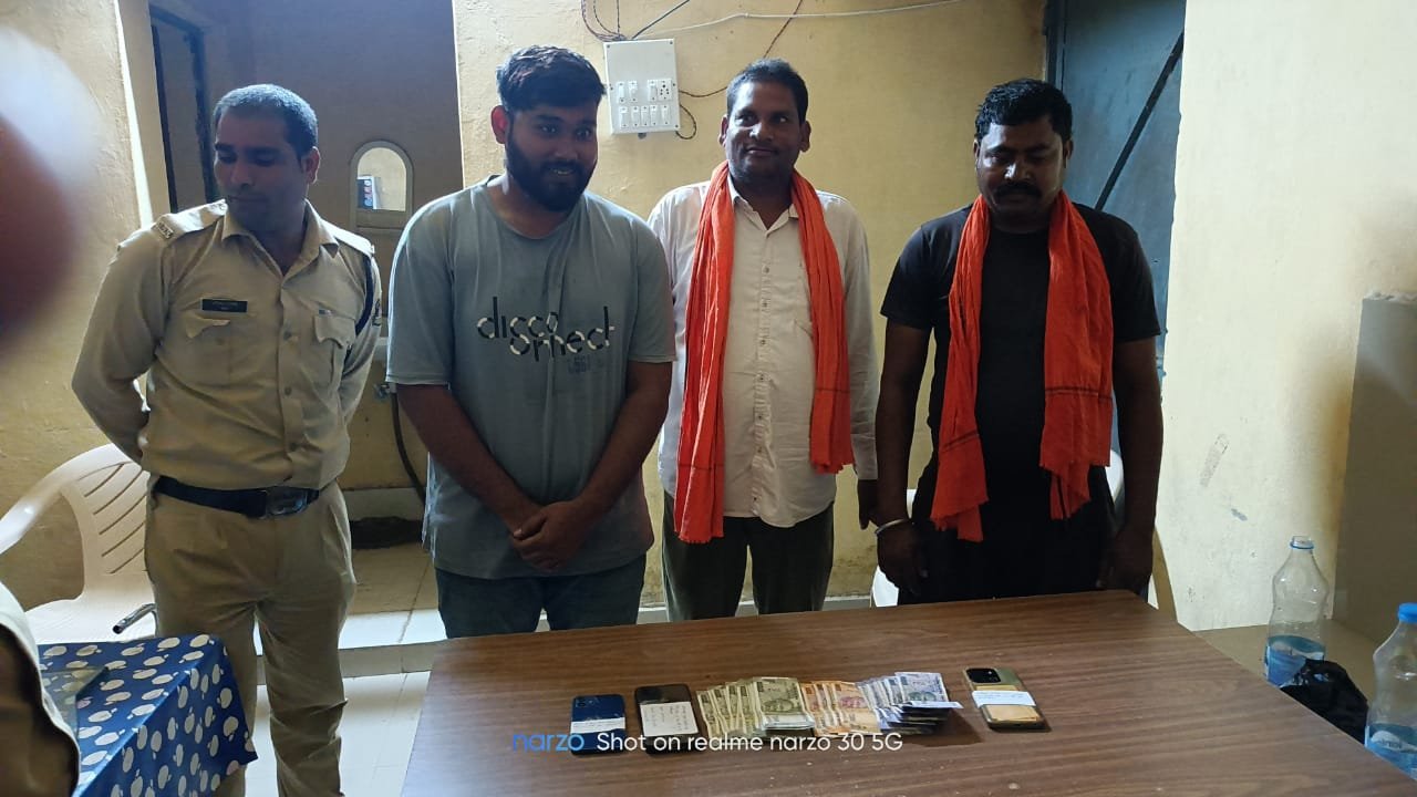 ⏩ श्री विवेक शुक्ला (IPS) पुलिस अधीक्षक जांजगीर – चाम्पा के निर्देशन जिले में जुआ, सट्टा खिलाने वालो के विरूद्ध लगातार कार्यवाही की जा रही है। इसी क्रम में थाना अकलतरा पुलिस एवं सायबर टीम जांजगीर को मुखबीर सुचना मिला की दिनांक 09.09.2024 को थाना अकलतरा क्षेत्र के ग्राम सराईगुहन कटघरी के टिकराभांठा में कुछ लोग रूपयें पैसे का दांव लगाकर जुआ खेल रहें है कि सूचना प्राप्त होने पर अतिरिक्त पुलिस अधीक्षक जांजगीर राजेंद्र कुमार जायसवाल के कुशल मार्ग दर्शन में रे कार्यवाही किया गया। मौके पर आरोपी 01. संदीप भारद्वाज उम्र 25 साल निवासी बस्ती अकलतरा 02. कमलेश पाटले उम्र 45 साल निवासी मुरलीडीह थाना मुलमुला 03. शिवचरण धीवर उम्र 42 साल निवासी पोड़ीदल्हा थाना अकलतरा को जुआ खेलते पकड़ा गया जिसके कब्जे से जुमला 15500/रूपय, एवम 52 पत्ती तास बरामद किया जाकर आरोपियों के विरूद्व थाना अकलतरा में अपराध क्रमांक 421/2024 धारा 3 (2) छ.ग. जुआ प्रतिषेध अधिनियम 2022 के तहत पंजीबद्ध कर आरोपियों को विधिवत गिफ्तार कर, कार्यवाही किया गया है।