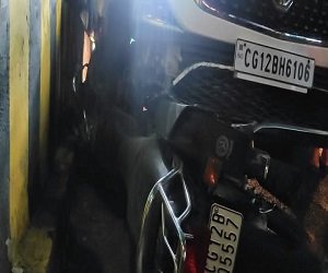 प्रत्यक्षदर्शियों का कहना है कि एमजी हेक्टर कार फैमिली बैठी थी और ड्राइवर नशे में था, जो मौका देख फरार हो गया। मौके पर पुलिस पहुंच गई है एमजी कार के नीचे फंसे बाइक और कार को निकालने की कोशिश कर रही है।कार बालकों के किसी ठेकेदार की बताई गई है वहीं घायल बाइक चालक के संबंध में विस्तृत जानकारी पुलिस जुटा रही है।