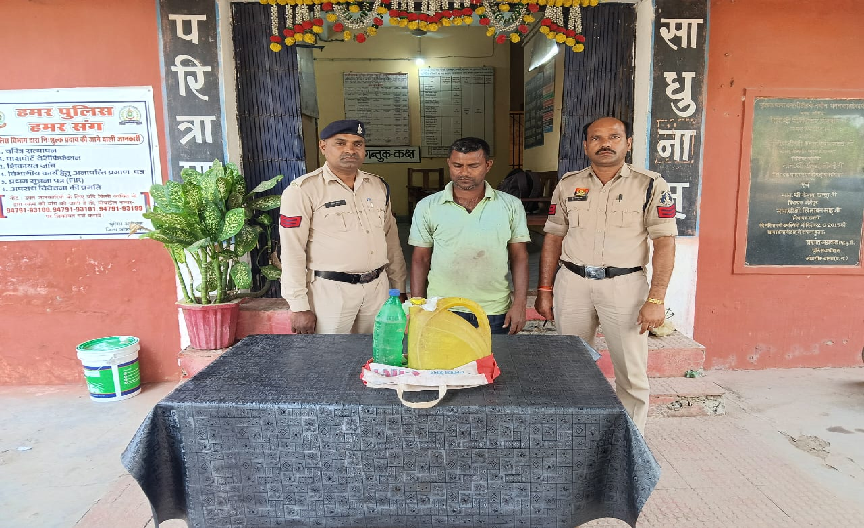वरिष्ठ पुलिस अधीक्षक जांजगीर चांपा श्री विवेक शुक्ला (IPS) के निर्देशन में जिला पुलिस जांजगीर द्वारा अवैध शराब बिक्री अंकुश लाने के लिए लगातार कार्रवाई की जा रही है। इसी क्रम में थाना बम्हनीडीह पुलिस को दिनांक 26-04-25 को जरिये मुखबीर सूचना मिला कि थाना बम्हनीडीह क्षेत्र के ग्राम कनकपुर में अवैध कच्ची शराब महुआ बिक्री की जाती है कि सूचना पर रेड कार्यवाही किया गया मौके पर आरोपी अगम दास सतनामी मिला जिसके के कब्जे से कुल 07 लीटर अवैध कच्ची महुआ शराब किमती 1400/- रू को गवाहों के समक्ष बरामद किया जाकर आरोपी के विरूद्ध अपराध धारा 34(2) आबकारी अधिनियम के तहत पंजीबद्ध किया जाकर आरोपी को विधिवत् गिरफ्तार कर दिनांक 26-04-2025 को न्यायिक रिमाण्ड पर भेजा गया है।