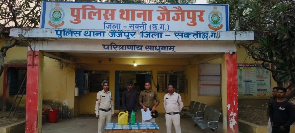 मामले का संक्षिप्त विवरण इस प्रकार है कि अवैध शराब, जुआ एवं गांजा बिकी एवं परिवहन पर अंकुश लगाने हेतु नशा मुक्ति अभियान के तहत लगातार वरिष्ठ अधिकारियों द्वारा दिशा निर्देश दिया जा रहा था जिसके परिपालन में दिनांक 01.02.2025 को अवैध शराब रेड कार्यवाही पर अवैध शराब रखकर परिवहन करने की सूचना मिलने पर श्रीमान पुलिस अधीक्षक महोदया सक्ती सुश्री अंकिता शर्मा (भापुसे), अतिरिक्त पुलिस अधीक्षक श्री हरीश यादव (रापुसे) एवं श्रीमान अनुविभागीय अधिकारी (पुलिस) शक्ति श्री मनीष कुंवर को सूचना के बारे में अवगत कराकर कुशल दिशा निर्देशन प्राप्त होने पर ग्राम गाडामोड़ नहरपार में आरोपी कृष्णा भारद्वाज पिता चमरु भारद्वाज उम्र 25 साल साकिन गाडामोड़ थाना जैजैपुर जिला सक्ती (छ.ग.) द्वारा एक पीले रंग की पांच लीटर व एक 01 लिटर क्षमता वाली प्लास्टिक जरिकेन में कुल 06 लिटर भरी हुई कच्ची महुआ शराब कीमती करीब 600/रू एवं दूसरे आरोपी लोचन खैरवार पिता रामेश्वर उम्र 22 वर्ष साकिन कारीभांवर थाना जैजैपुर से एक पीले रंग की 05 लीटर वाली प्लास्टिक जरिकेन में 05 लीटर व एक प्लास्टिक बाटल मे 01 लिटर कुल 06 लीटर भरी हुई कच्ची महुआ शराब कीमती 600/रू को वजह सबूत में जप्त कर कब्जा पुलिस लिया गया। आरोपी कृष्णा भारद्वाज व लोचन खैरवार को विधिवत गिरफ्तार कर न्यायिक रिमांड पर भेजा गया है। उक्त कार्यवाही निरीक्षक गगन बाजपेई थाना प्रभारी जैजैपुर के नेतृत्व में प्र.आर. 339 विष्णु कश्यप, प्र.आर 56 निरेश नेताम , आर. 202,295, 276 का विशेष योगदान रहा है।