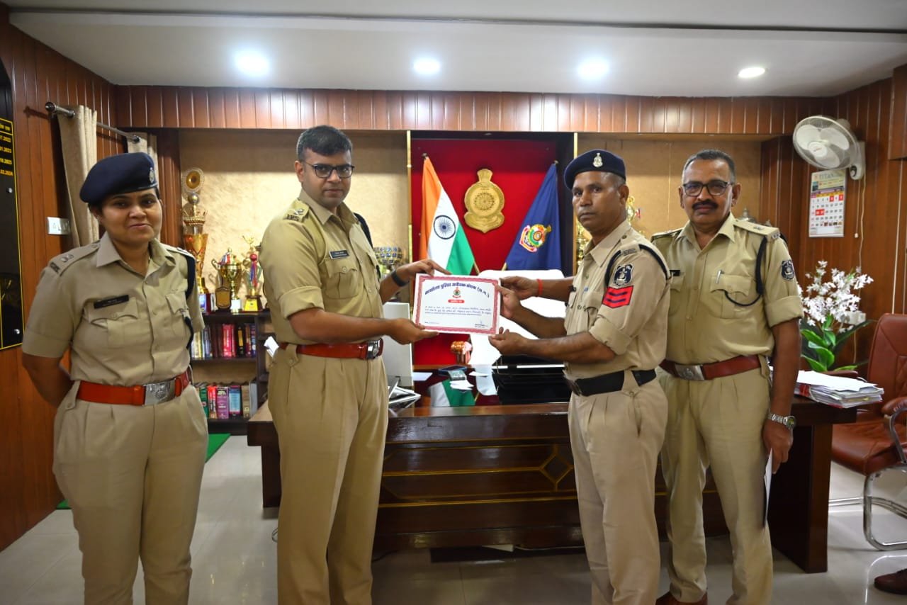 इस उत्कृष्ट कार्य करने के लिए पुलिस अधीक्षक महोदय के द्वारा निरीक्षक उषा सोंधिया, प्रधान आरक्षक 215 ओम प्रकाश डिक्सेना, डायल 112 आरक्षक 895 सुरेंद्र कंवर, 50 अनिल पोरते, 850 मानस मनी पैकरा, 760 अशोक खरे को प्रशस्ति पत्र और नगद ईनाम दिया गया।