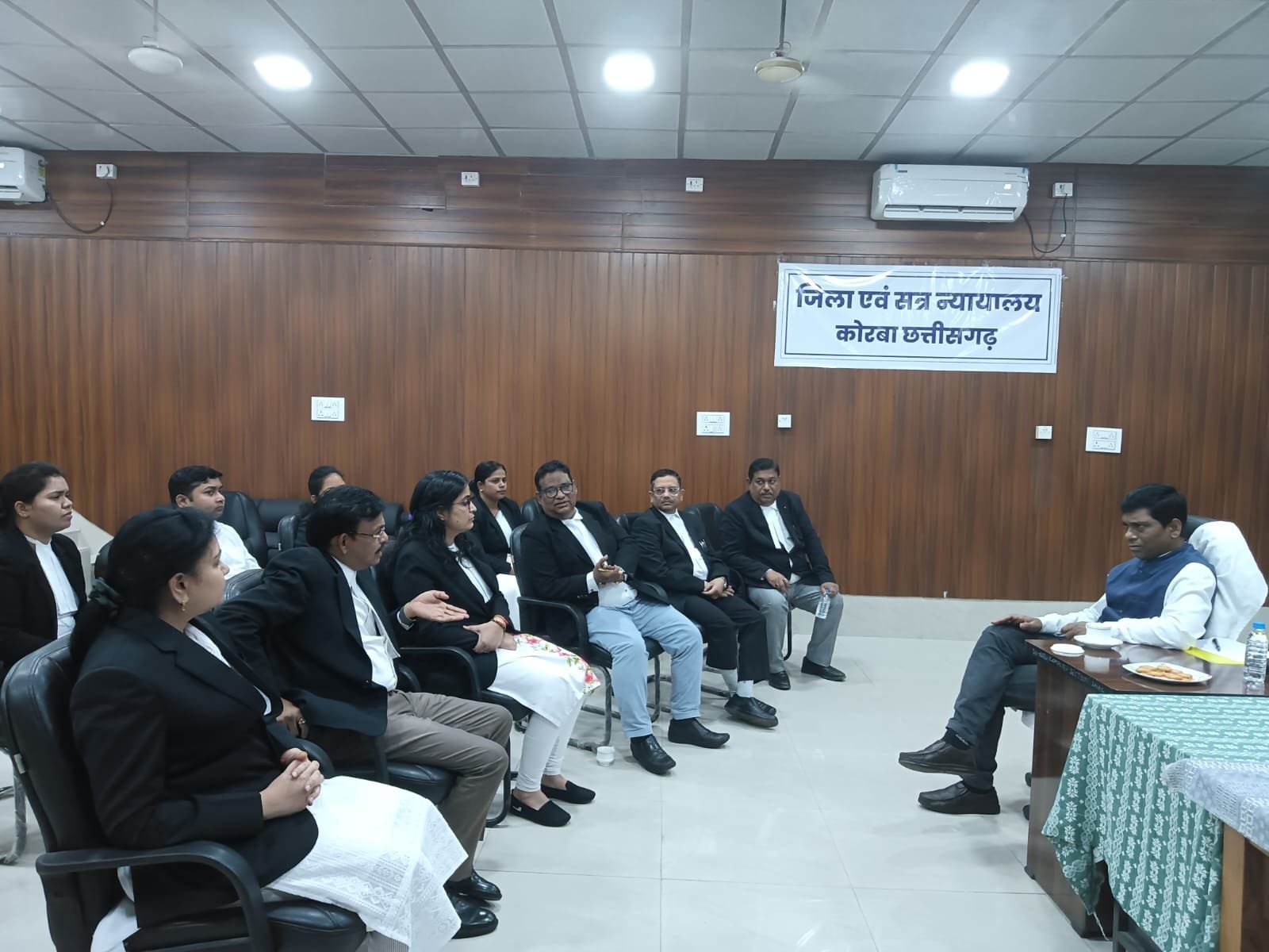 राष्ट्रीय विधिक सेवा प्राधिकरण, नई दिल्ली के संयुक्त तत्वाधान में मध्यस्थता एवं सुलह परियोजना समिति के सहयोग से विशेष मध्यस्थता अभियान राष्ट्र के लिए मध्यस्थता अंतर्गत श्री एस. शर्मा, प्रधान जिला न्यायाधीश / अध्यक्ष, जिला विधिक सेवा प्राधिकरण, कोरबा की अध्यक्षता में जिला न्यायालय कोरबा में पदस्थ समस्त न्यायाधीशों एवं विडियो कांफेंसिंग के माध्यम से व्यवहार न्यायालयों कटघोरा, पाली एवं करतला में पदस्थ न्यायाधीशगण के साथ तृतीय बैठक विडियो कांफ्रेंसिंग कक्ष में आयोजित की गई।