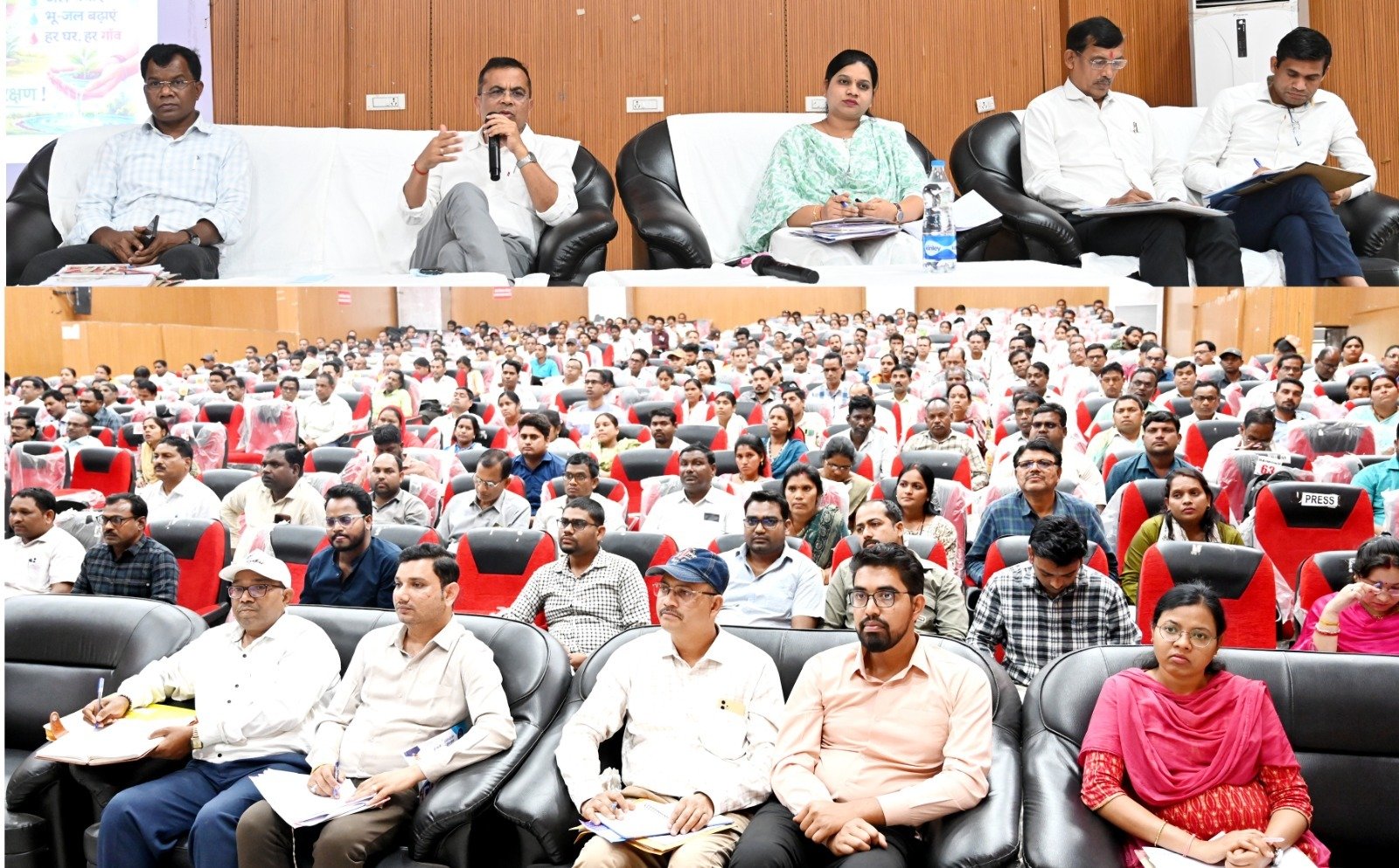 जांजगीर-चांपा 26 फरवरी 2026/ कलेक्टर श्री जन्मेजय महोबे की अध्यक्षता में जनपद पंचायत अकलतरा, बलौदा, पामगढ़, बम्हनीडीह, नवागढ़ जनपद पंचायत अधिकारी कर्मचारी की बैठक आडिटोरियम भवन जांजगीर में आयोजित की गई। बैठक में कलेक्टर ने कहा कि जल संचय जन भागीदारी मोर गांव – मोर पानी अभियान को नई गति देते हुए 1 मार्च 2026 से विशेष जल संचय जन भागीदारी महाभियान चलाया जाएगा। साथ ही विश्व महिला दिवस के अवसर पर इस अभियान को जन-आंदोलन का रूप देते हुए रिचार्ज पिट निर्माण, सोखता गड्ढा, रेन वाटर हार्वेस्टिंग का निर्माण किया जाएगा। यह अभियान सतत रूप से जागरूकता के साथ जारी रहेगा। बैठक में जिला पंचायत सीईओ श्री गोकुल रावटे ने पीपीटी के माध्यम से जल संचय एवं जनभागीदारी के बारे में विस्तार जानकारी दी। इस दौरान जनपद पंचायत सीईओ, आर ई एस ईई , इंजीनियर, पी एच ई ईई , महात्मा गांधी नरेगा एवं पी एम आवास के ब्लॉक कॉर्डिनेटर, तकनीकी सहायक, ग्राम पंचायत सहित सचिव, रोजगार सहायक उपस्थित रहे।